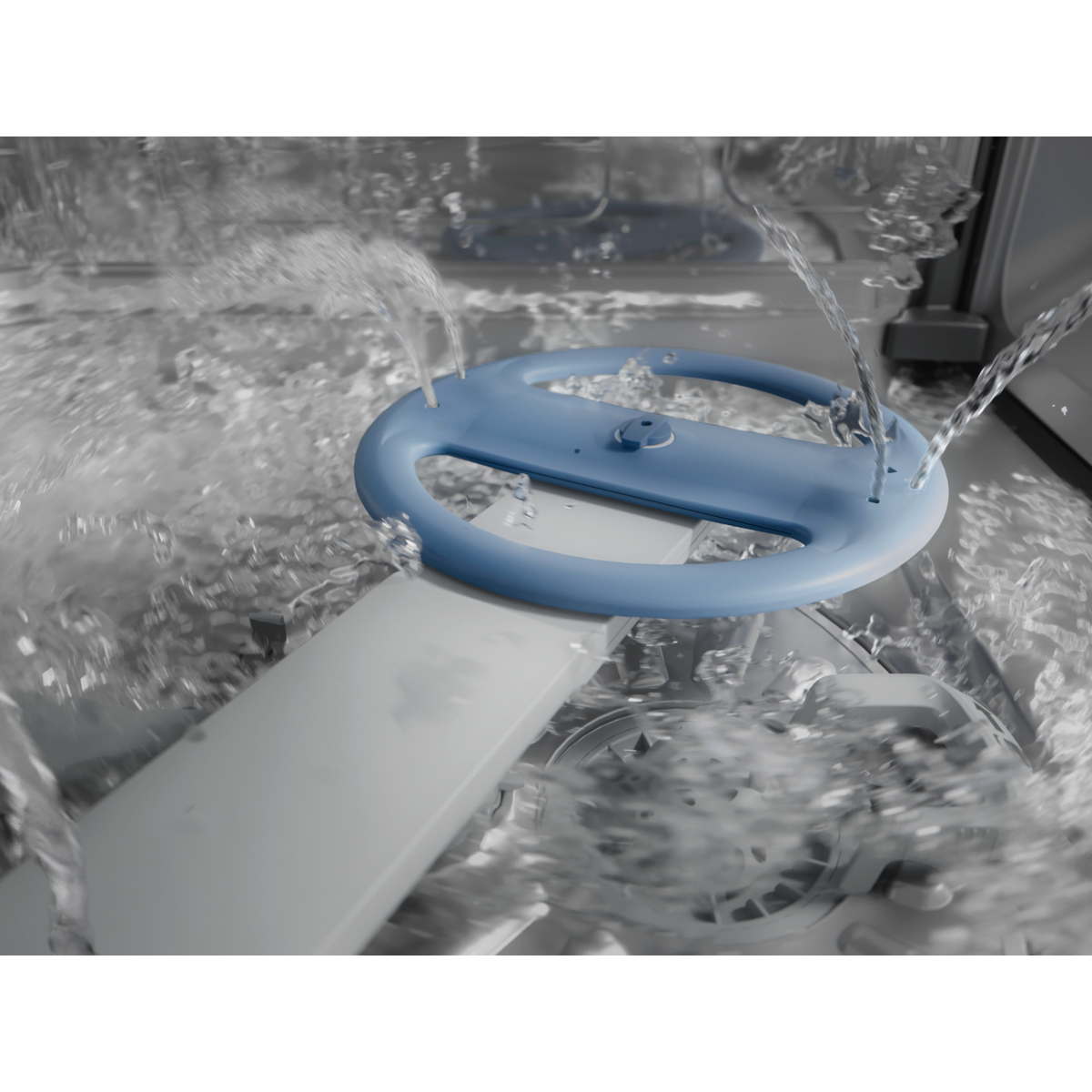Dubbel roterende sproeiarm reinigt vanuit alle richtingen